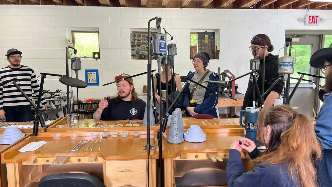 In this workshop, students will explore the specialized process of champlevé enameling, gaining a fundamental understanding of how to fire enamels into recessed areas of metal. Enamel is an excellent way to introduce both narrative and abstract imagery, adding vibrant color to jewelry. This exploratory, technical workshop will cover essential techniques, including etching, soldering, and image transfer, along with how to work with both opaque and transparent enamels. Various finishing techniques will also be taught. This workshop is open to all skill levels, though some prior metalsmithing experience is helpful but not required. Students can expect to leave with multiple samples and/or finished pieces.